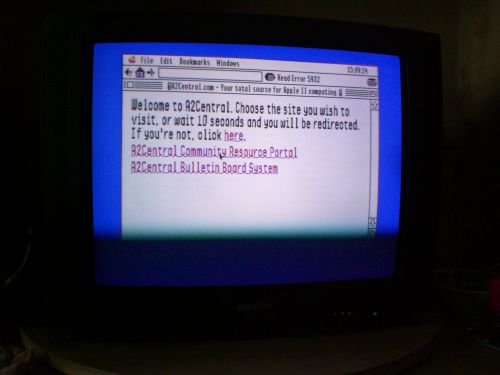 Dopo aver aquistato la Uthercard della A2RetroSystems, installato Marinetti (lo stack TCP/IP) ed il browser, collegato il IIGS al ruouter, con mano tremante ho digitato l'indirizzo "www.a2central.com" e....